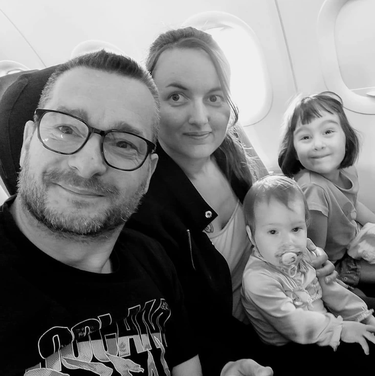 Je suis Océane, mariée et maman d'enfants en bas âge comme vous pouvez le voir sur cette photo, où nous nous apprêtons à décoller pour notre nouvelle vie.